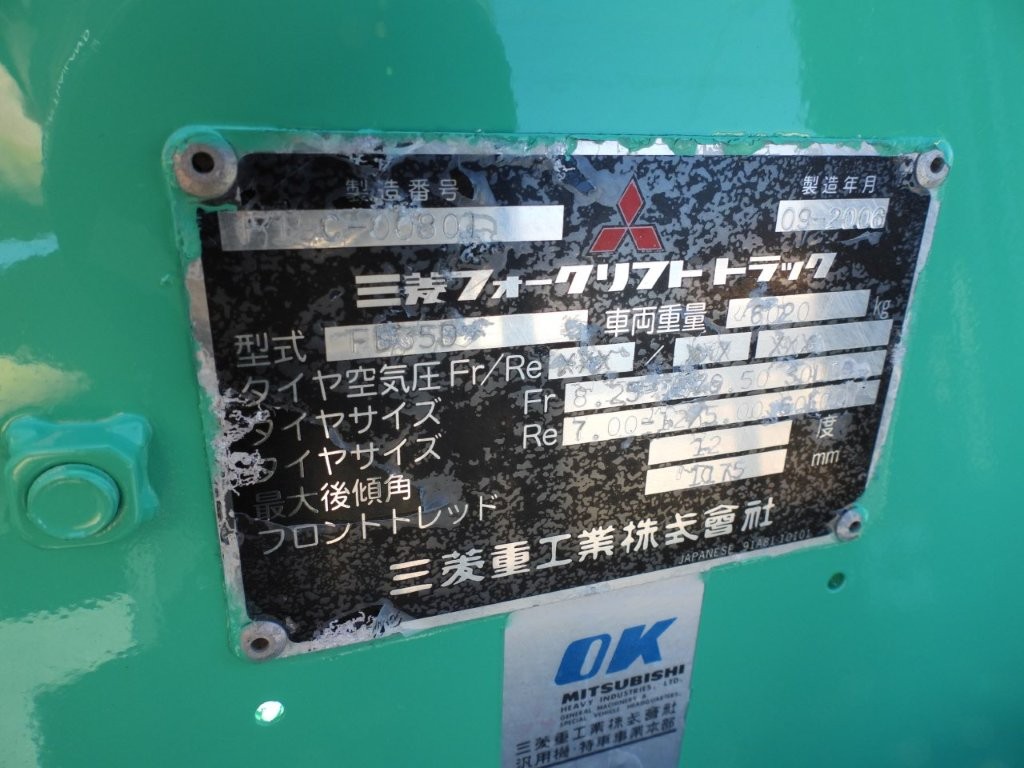 アーワーメーター234時間 フォーク長さ182cm (2025年12月1日 9時 15分 追加) 【商品の説明】 ブランド、メーカー:MITSUBISHI 型番:FD35D 年式:2006年9月 【商品の状態】 使用状況:塗装済み